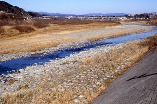 福生市の市民が撮った古い写真を見ると、かつては川底がかなり高かったようで、永田橋がまだ流れ橋のようなものだった頃、両岸と河川敷の高さがほとんど変わらないのには驚いた。いまははるか下に河原が見下ろせる。